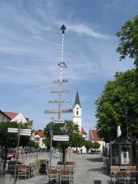 Der Marktplatz von Bad Kötzting mit blick auf die St. Veit Kirche von wo aus alljährlich die Pfingstreiter nach Steinbühl reiten. Dienstag und Donnerstag ist hier ein Bauernmarkt und auch die Standmärkte (Kita) und an den Adventwochenenden der Christkindlmarkt finden hier statt. Es gibt einige Geschäfte wie die Einkaufswelt Wanninger sowie Cafe`s und Eisdielen wie das Valentino oder auch Pizzaria`s wie da Enzo die zum verweilen einladen. Jedes Jahr gibt es in der Sonnen Apotheke am unteren Marktplatz einen Kalender mit alten Fotos über Kötzting wie es früher mal ausgesehen hat. Im Juli gibt es jedes Jahr eine Historische Nacht in der die Geschäftswelt bis 22:00 Uhr geöffnet hat.